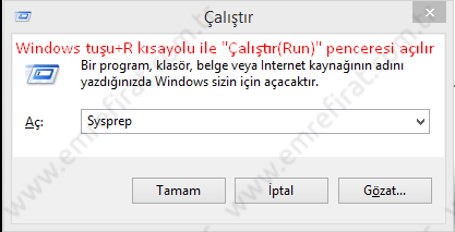 Sysprep işlemini konsol üzerinden yapabileceğimiz gibi arayüz üzerinden de yapabiliriz. Ben arayüz üzerinden yapmayı tercih ediyorum.